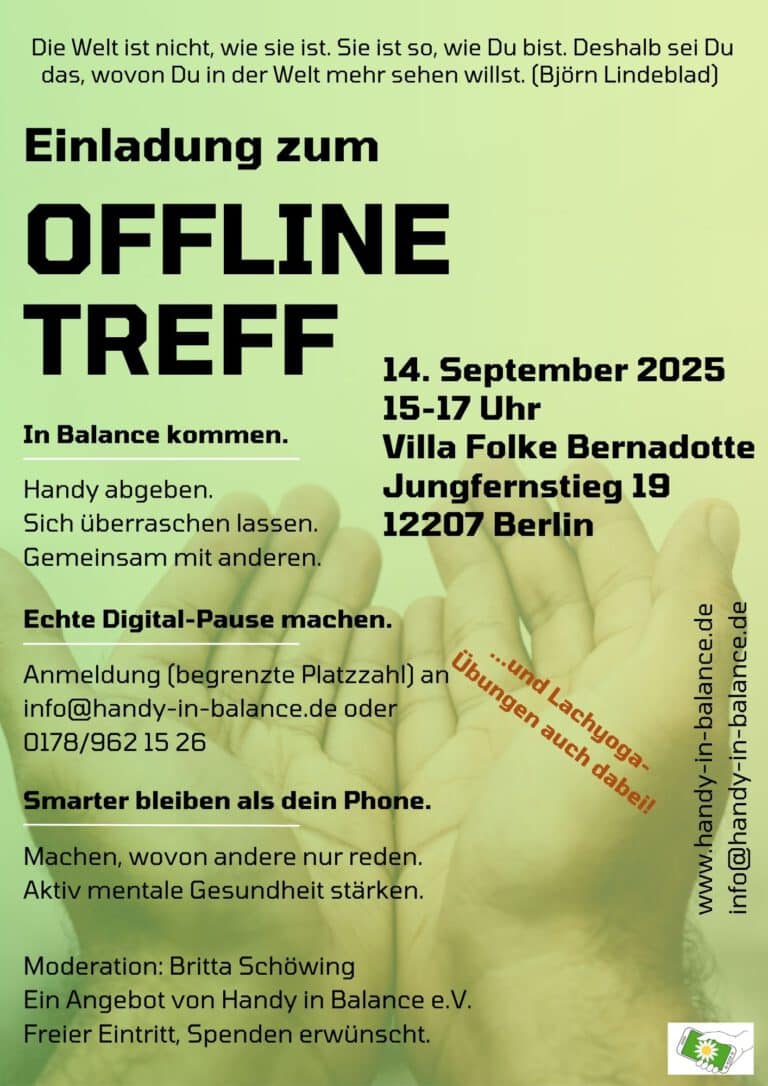 Seit wir es im Februar mit unseren OFFLINE TREFFS angefangen haben, gibt es immer mehr Menschen, die dabei sein wollen. Immer mehr Menschen wird klar: OFFLINEfähig sein ist die neue Schlüsselkompetenz! Wir fordern die Schulen auf, diese Fähigkeit bei unseren Kindern zu stärken. Nicht umsonst wird das Handyverbot in den...